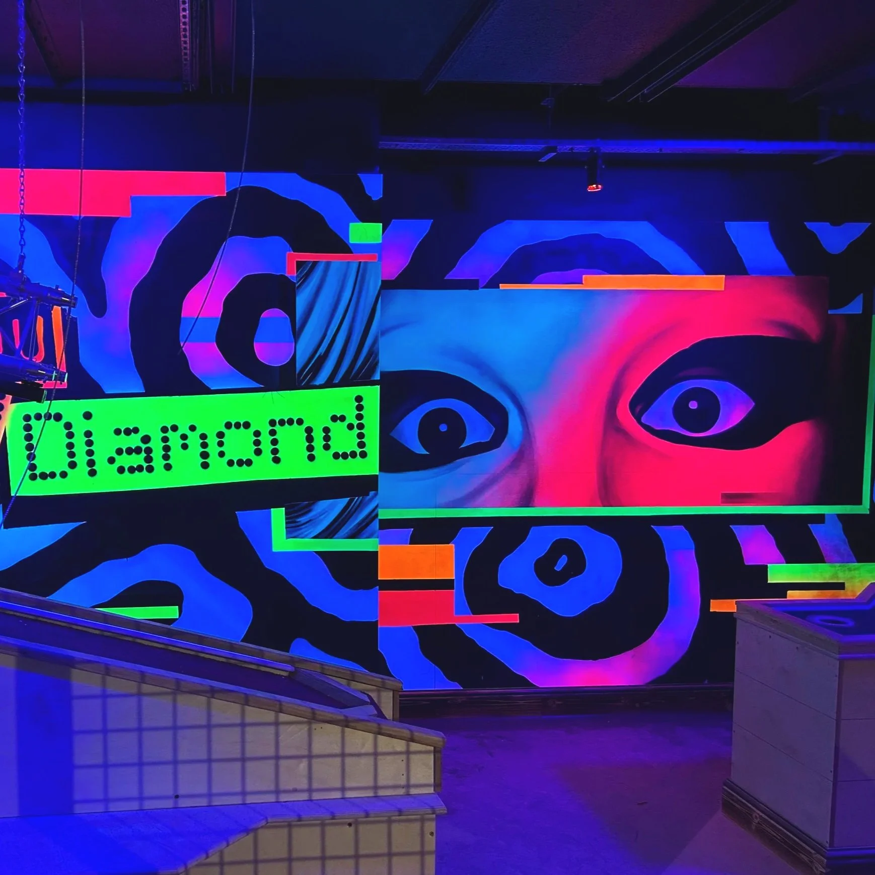 We specialise in UV spray-painted graphics, producing clean, precise, and long-lasting finishes that perform under ultraviolet lighting. Our work for Crazy Pool areas in multiple Roxy and Kingpins venues focuses on bold composition, sharp linework, and colour palettes designed to remain vibrant and durable over time. Each design is tailored to the specific layout and branding of the space, ensuring clarity and impact from every angle.