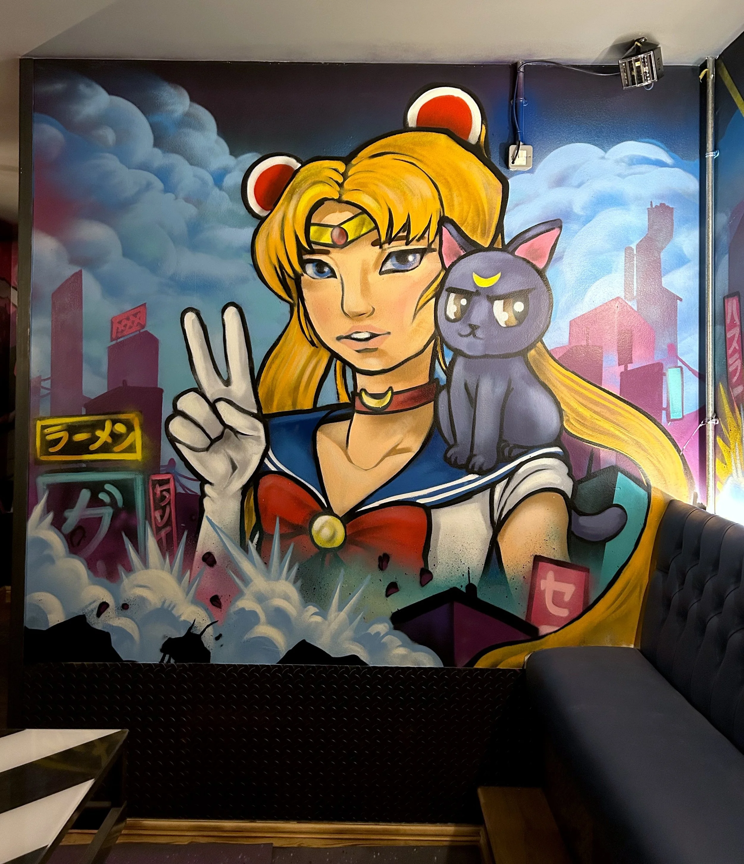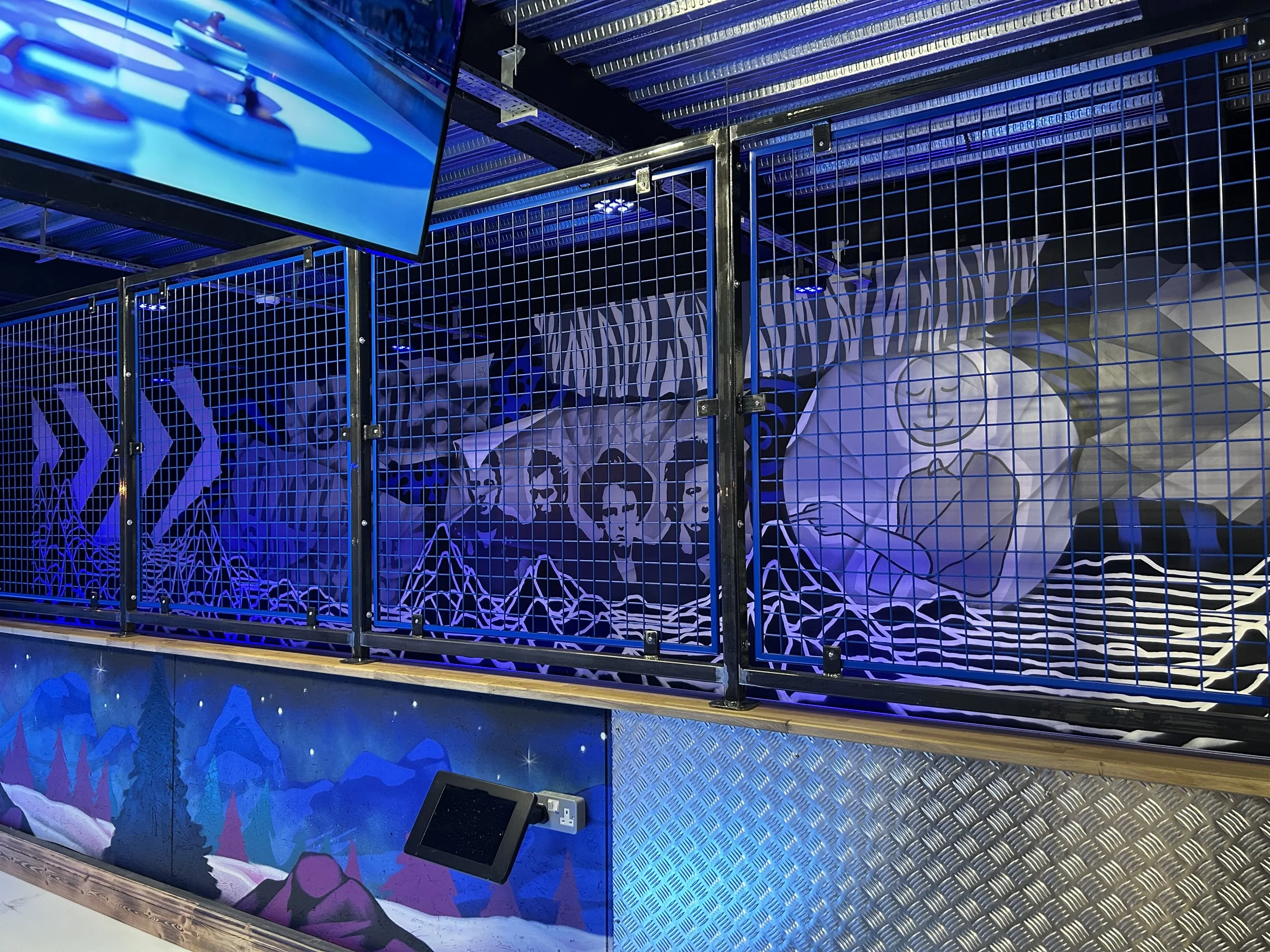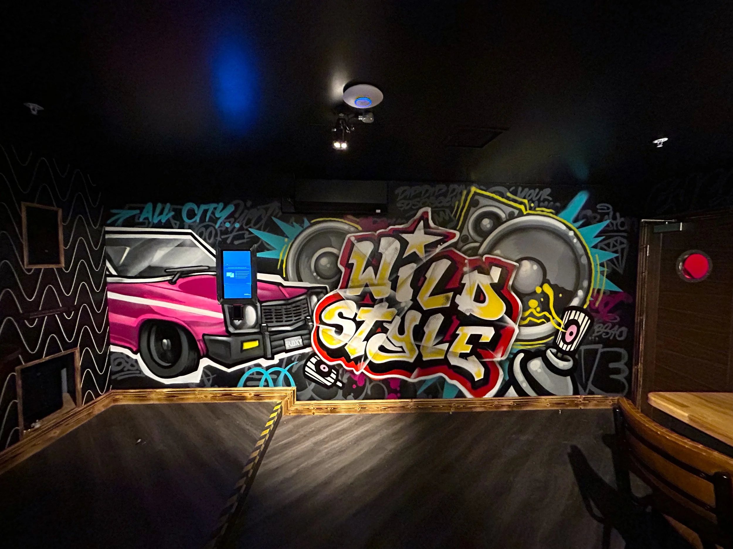 I have been painting Murals in the interiors of Roxy pretty much full time for the last four years . I’ve painted sites in Bristol, Edinburgh, Sheffield, Birmingham, Cardiff, Leeds, Manchester, York, Leicester, Liverpool, Cheltenham , Nottingham….and a few others i’ve definitely forgotten…... I have been with Eject, as a glorified assistant and emotional support guru; as we paint 12 hour days ;often till 5 o’clock in the morning. A lot of the ground work with design and concept art have been carved out over the many years before I came on to the project, but every wall we paint is completely unique with a lot of creative freedom. Together, we spend roughly 8 weeks painting in these sites and there really are no photos that do any justice to the amount of work that goes into creating these builds. Below are a few photos/videos of the sites . You can find your local Roxy here https://roxyleisure.co.uk/ and make sure to go check out Ejects artwork here https://demonsinthedetails.com